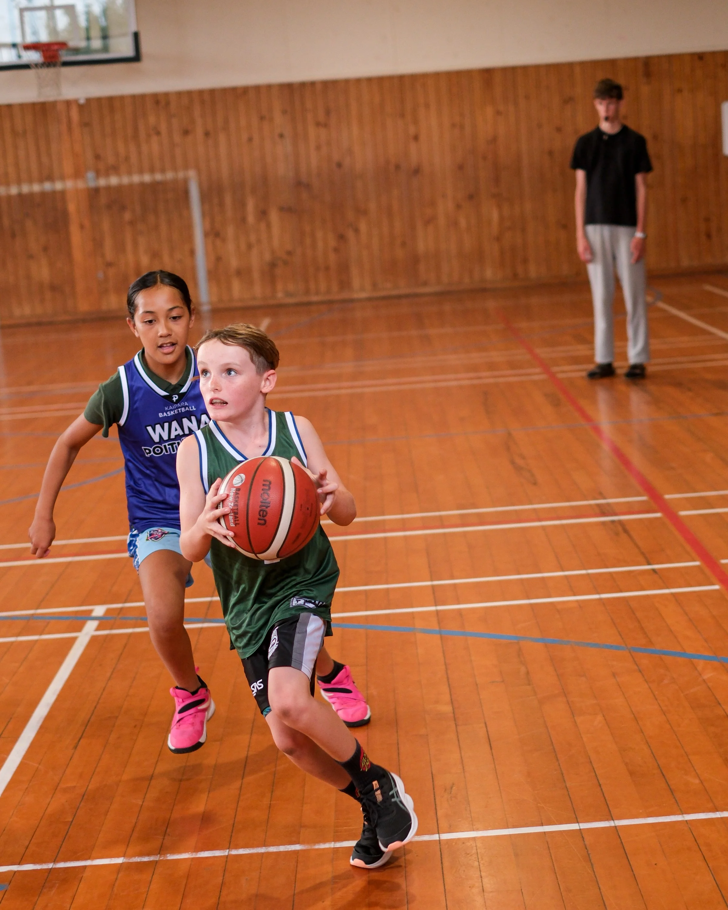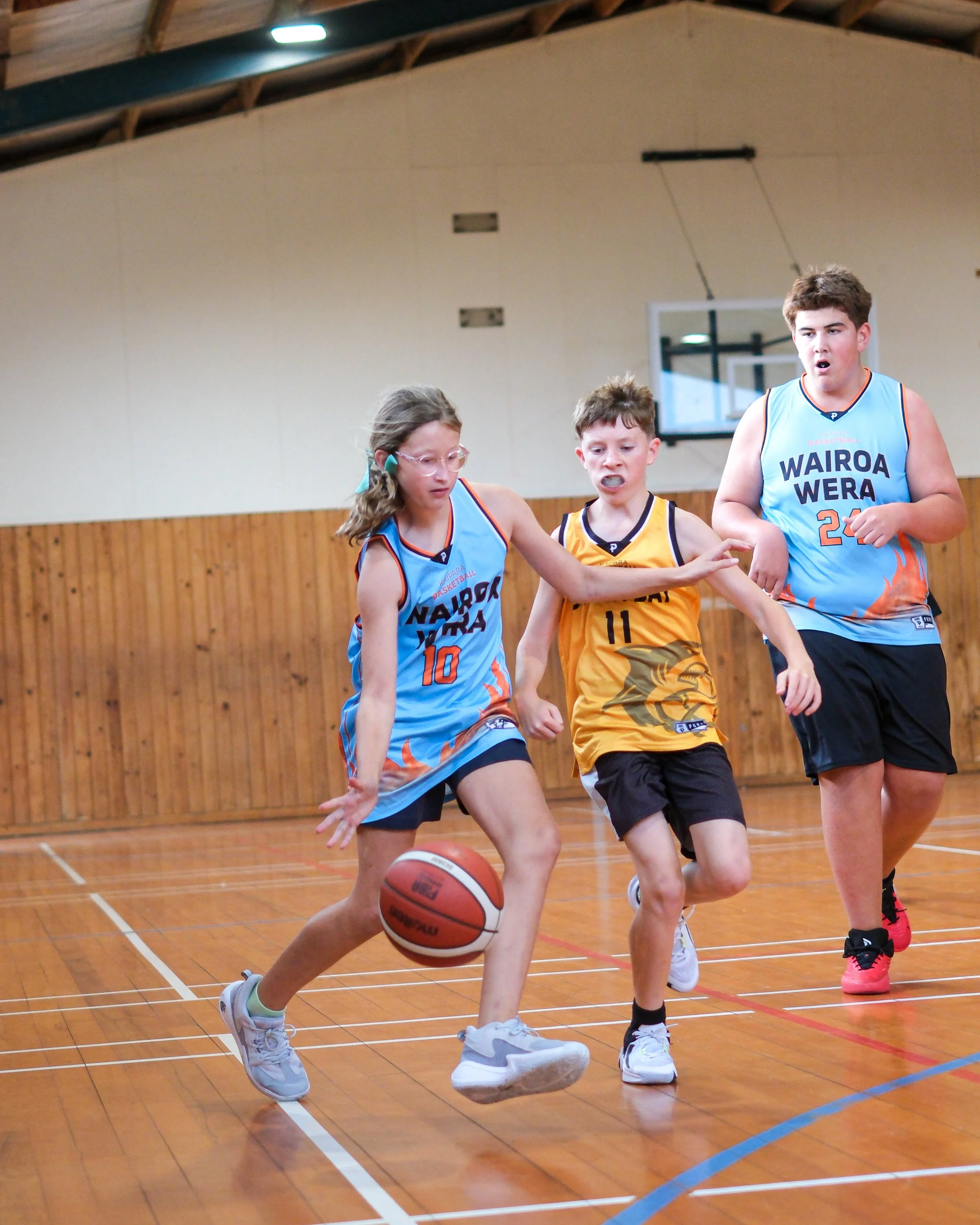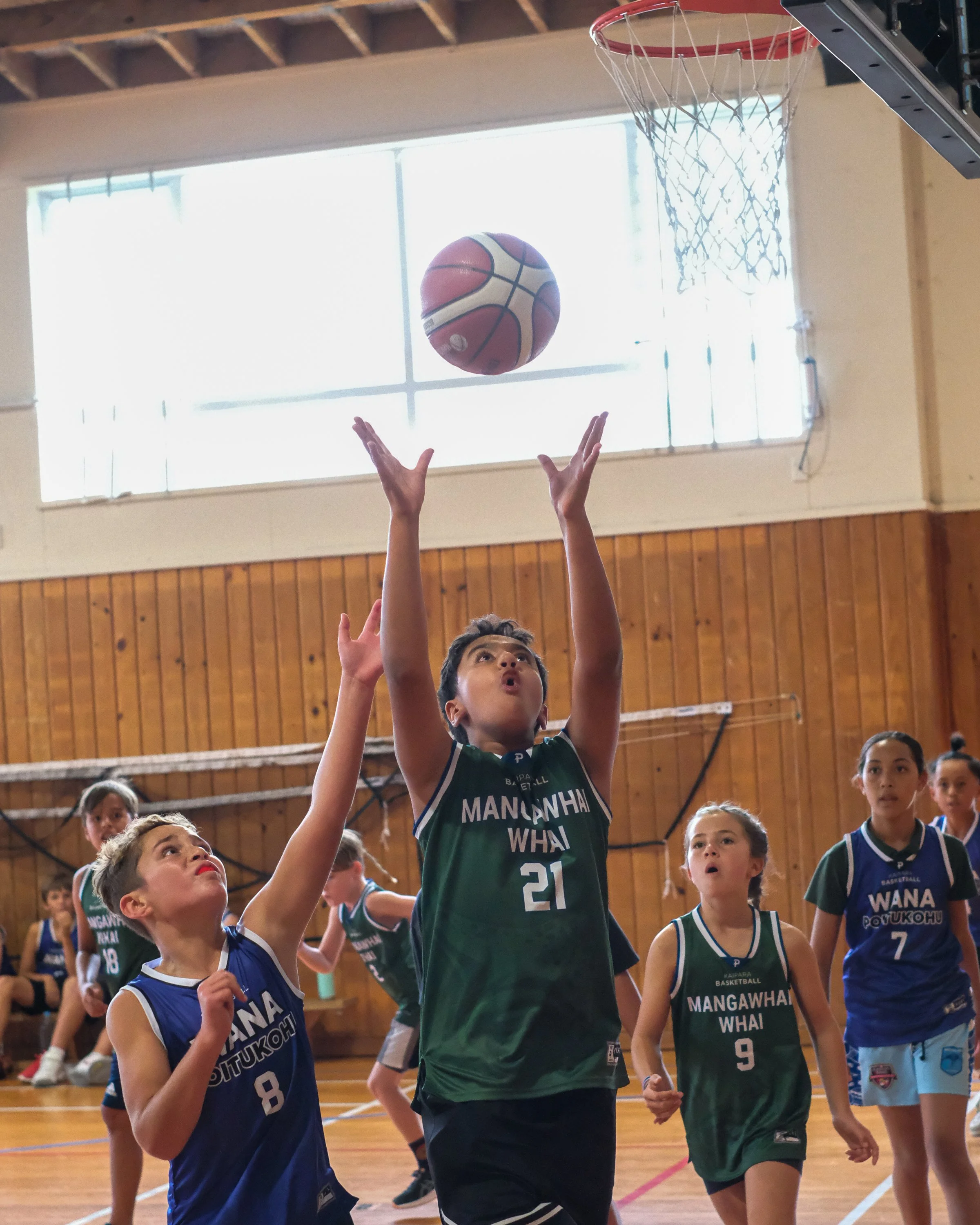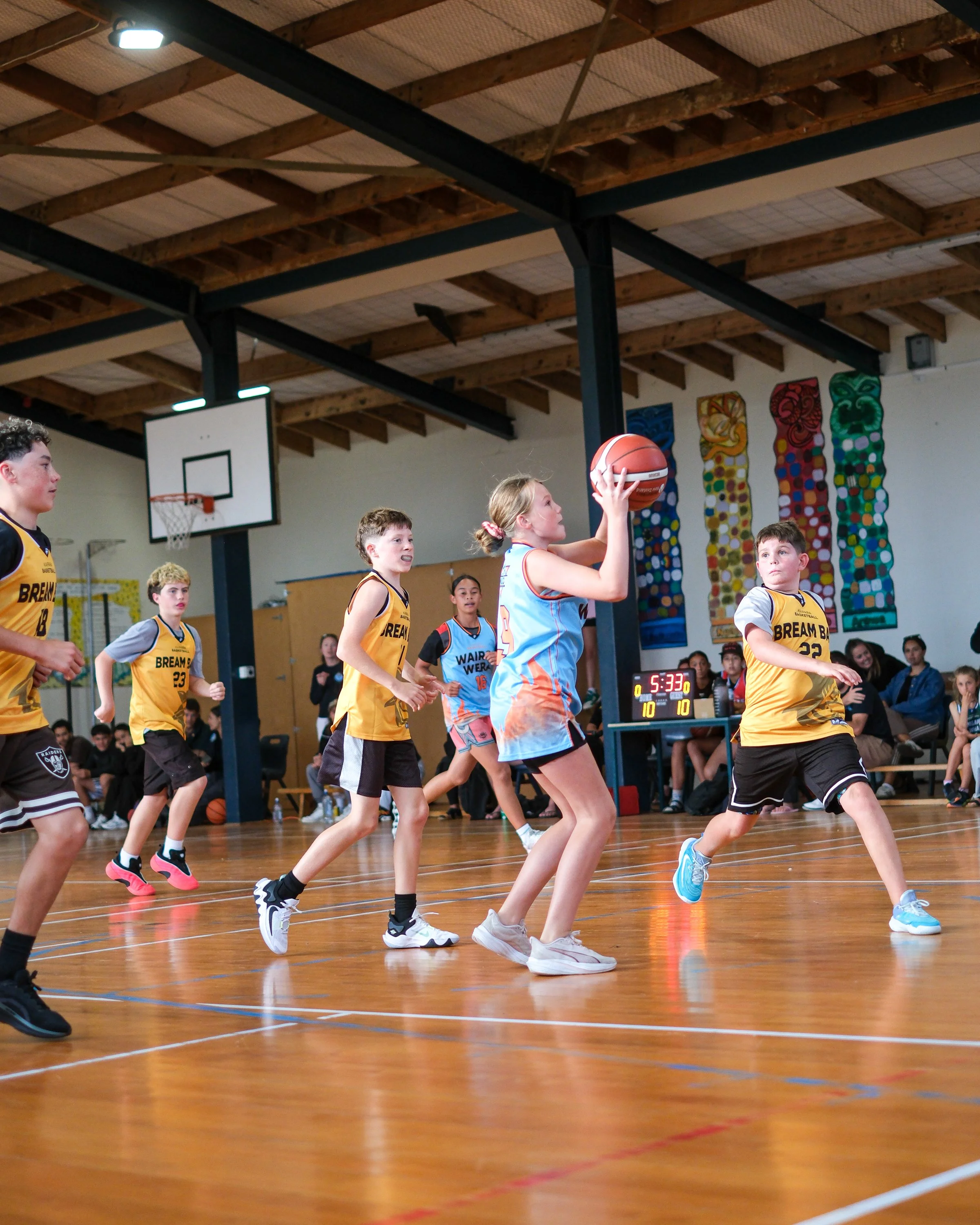 The Under 12s match-up was a cross-town derby between Wana Poitūkohu (Wellsford) and Mangawhai Whai - it was a real shoot-out. Both teams running and gunning up and down the court at a frantic pace. Whai’s Malakai Watt and Wana’s Reko Ranger exchanged buckets throughout the game, while Bobbie Williams and Indie Te Haara dominated inside the paint for Wana. In the end, Wana Poitūkohu ran out winners, having dangerous players throughout their team, they proved too strong, winning 29-12. This was reflected in the naming of the All-Star Five’s (Boys and Girls) for the under 12 age group. Wana had 4 players out of a total 10 included in the All-Star teams.