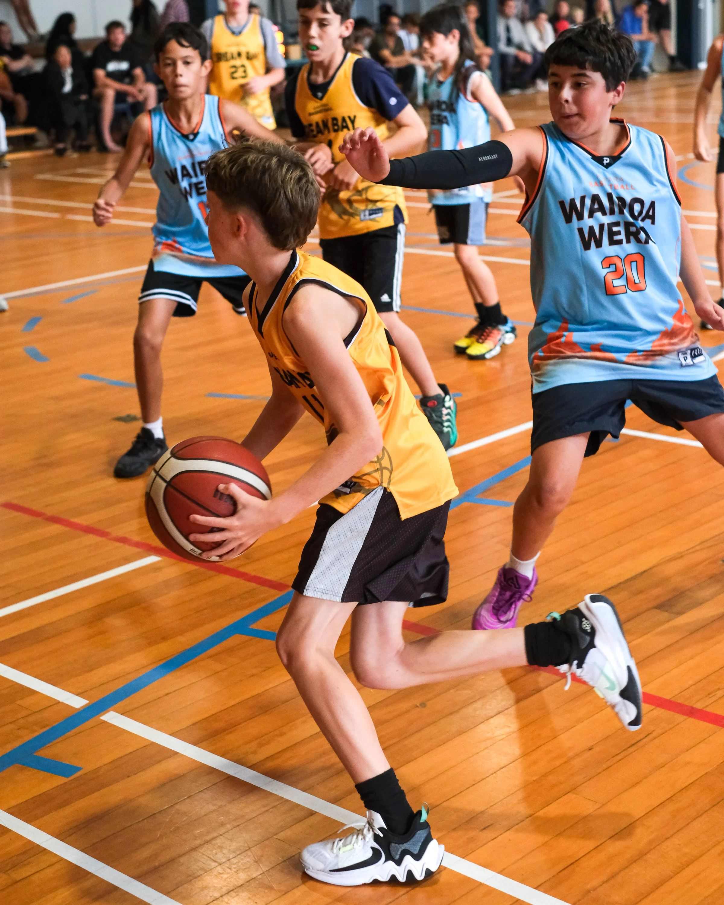 The first matchup in the U14s had Wairoa Wera taking on the Bream Bay Threshers. The game started off relatively tight. However, after half time, Cameron McCarthny and Tyler Lunjevich went berserk, combining for 44 points out of the total 49. Breeze Epere-Toko defended well for the Wera, and Sam Leao was a beast in the post.